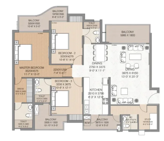 | 3 BHK + STUDY | 1333 Sq.ft | ₹ On Request | Complete Costing Details |