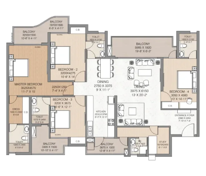 | 4 BHK + STUDY | 1599 Sq.ft | ₹ On Request | Complete Costing Details |